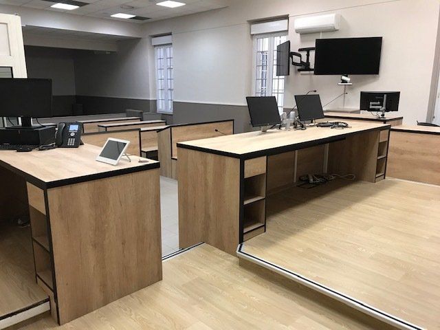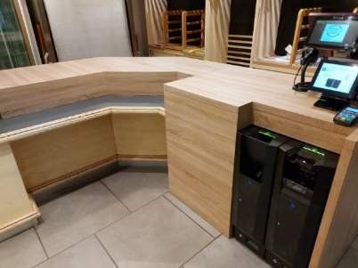 Agencement banque d'accueil pour recevoir une caisse automatique