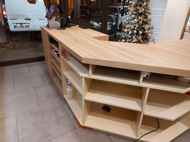Votre menuiserie intervient pour des banques d'accueils et des façades de commerces !