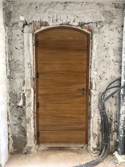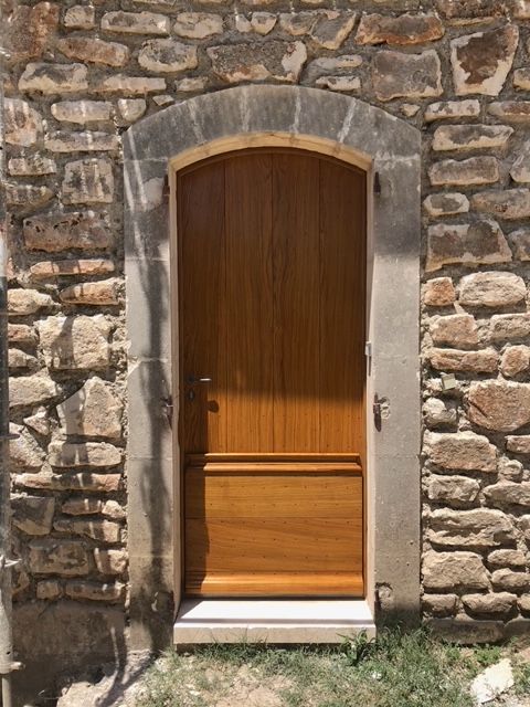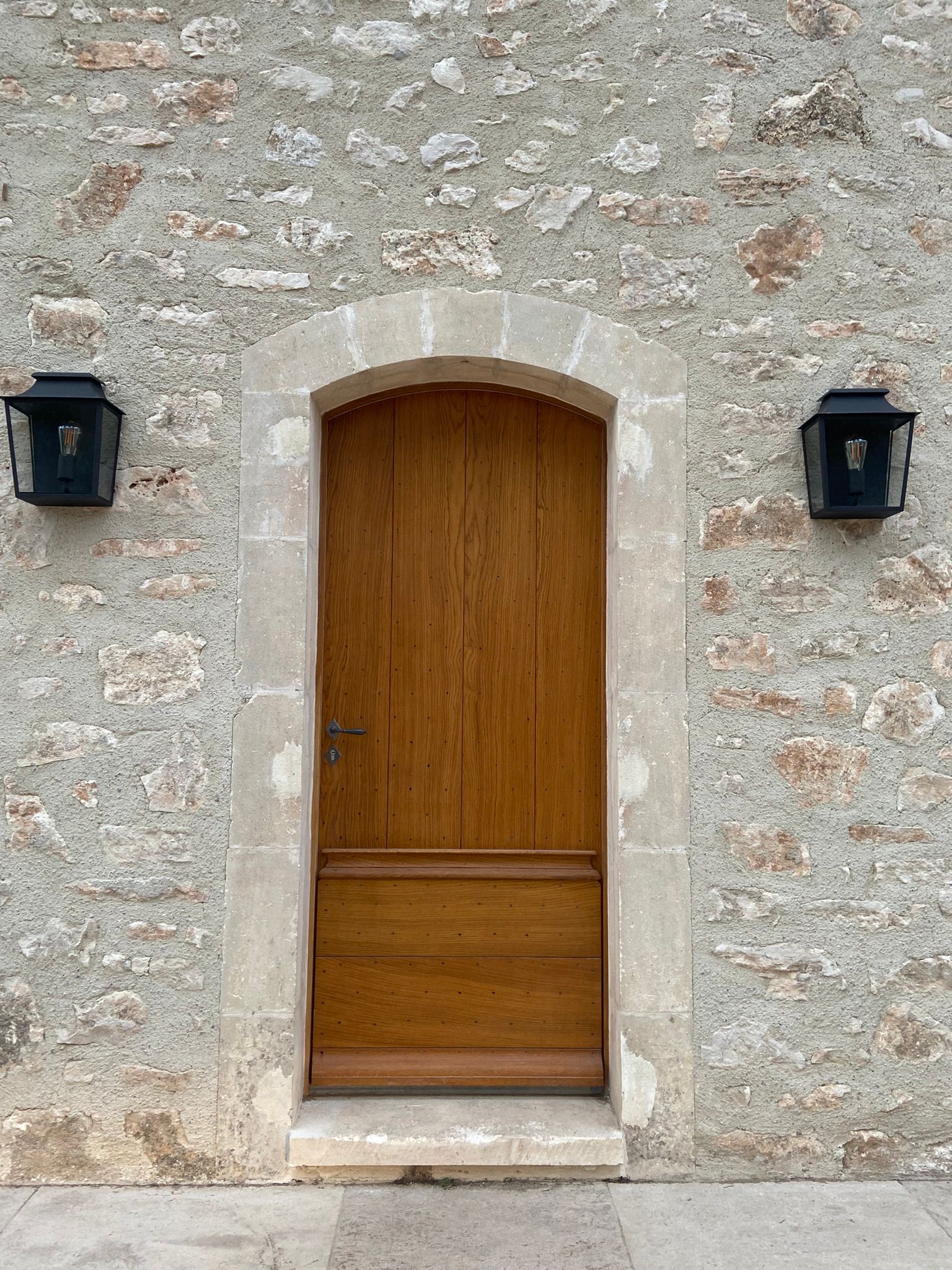 Porte cintrée doublée à la provençale en chêne massif vue extérieure
